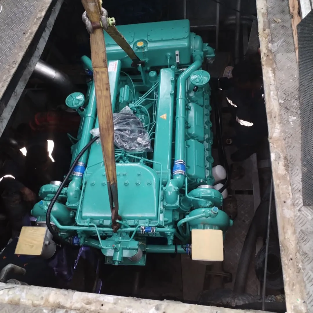 - Lowering, positioning, and securing of the new main marine engine within the engine room